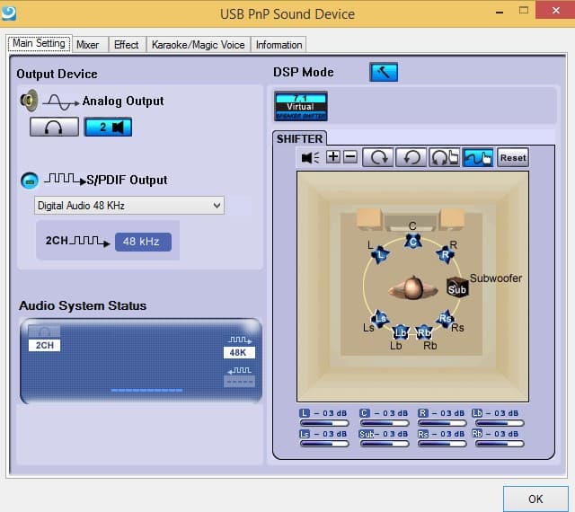 Встроенная звуковая карта основана на уже немолодом чипе C-Media CM108. Во многих случаях она не потребует специальных драйверов для своей работы. Правда, штатные драйвера Windows не обеспечивают конфигурацию 7.1. С другой стороны, подобные виртуальные реализации, как мы уже не раз видели, не всегда обеспечивают какое-либо реальное преимущество для пользователя. Так что, на наш взгляд, использовать фирменное программное обеспечение от производителя совсем не обязательно. Тем более что собственно драйвера, входящие в его состав, старше, чем предлагаемые Windows по умолчанию.
