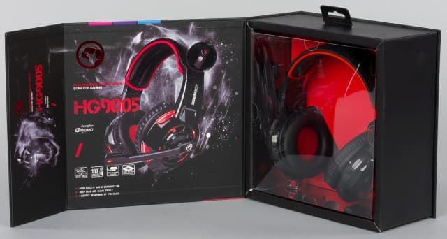 Гарнитура Marvo HG9005 является характерным представителем массового сегмента игровых моделей. Она имеет крепкую конструкцию, неплохой дизайн, встроенную подсветку чашек, пульт управления на кабеле.