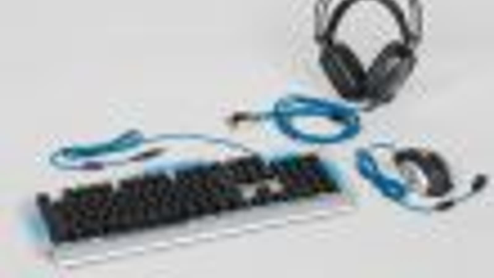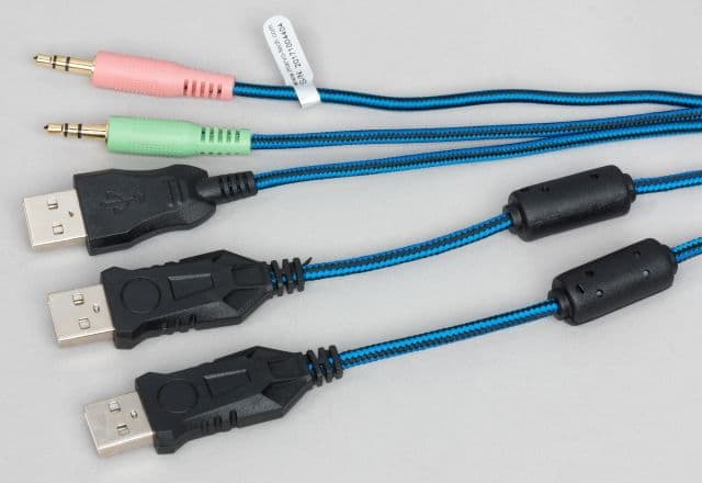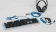 Интерфейсный кабель в текстильной оплётке синего цвета хорошо гармонирует с общим стилем дизайна. У мыши и гарнитуры кабели в точно такой же синей текстильной оплётке.