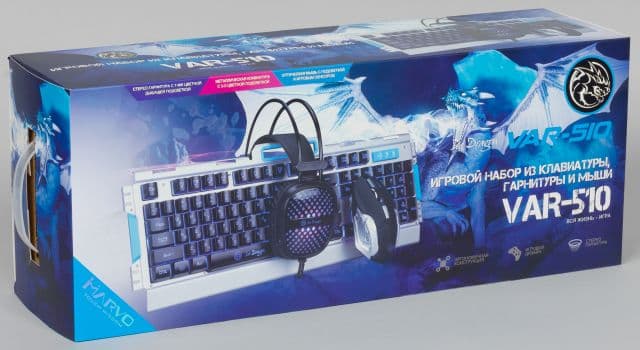 Комплект игровой периферии Marvo VAR-510 продаётся в объёмной иллюстрированной коробке. В комплект поставки входит очень краткое руководство пользователя.