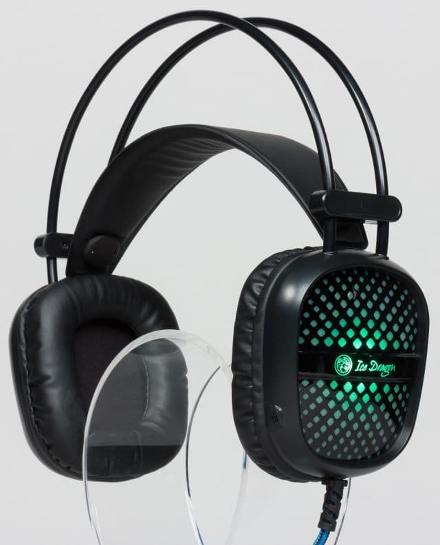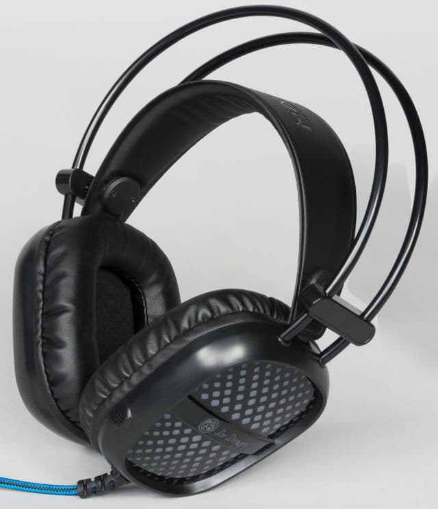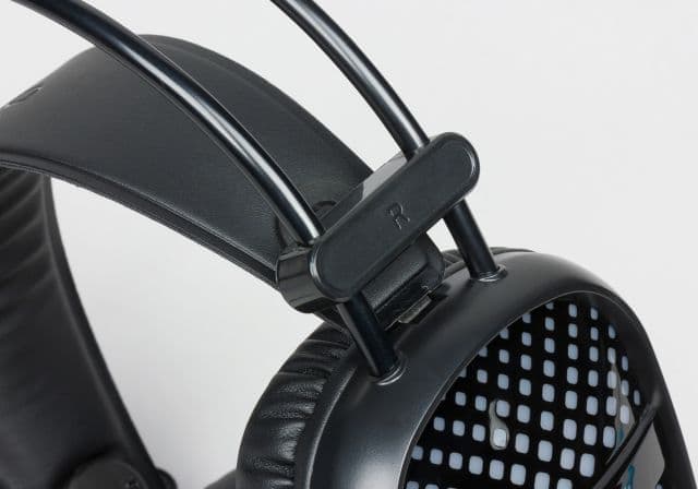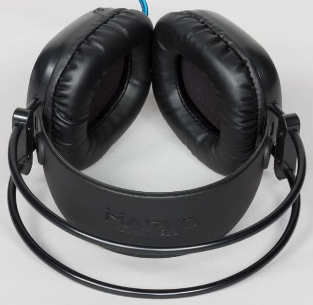 Гарнитура из игрового комплекта Marvo VAR-510 имеет двойное оголовье, позволяющее довольно удобно удерживать наушники на голове пользователя. Чашки выполнены из пластика и оснащены подсветкой, которую можно отключить, не используя штекер USB на комбинированном интерфейсном кабеле. Семицветная подсветка работает в единственном режиме циклической смены цвета.
