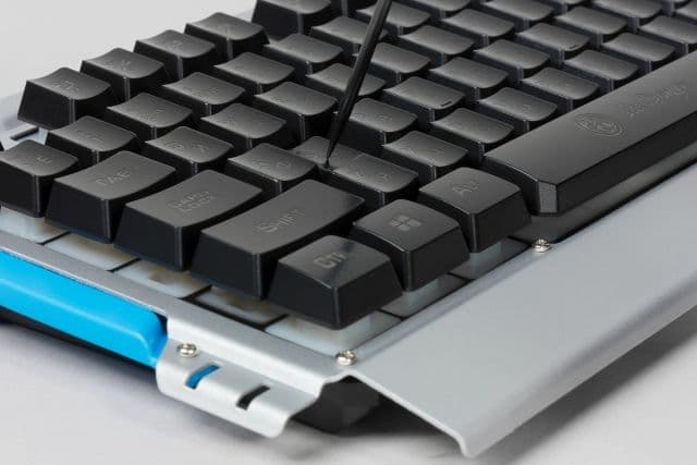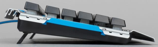Две откидные ножки позволяют изменить угол наклона клавиатуры к поверхности стола.