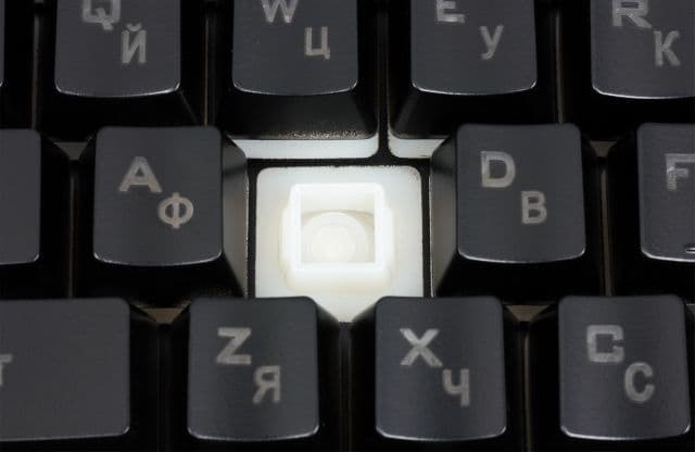 Для символов латиницы и кириллицы использован одинаковый шрифт (4×4 мм), а сами символы расположены по диагонали. Светодиод подсветки размещен по центру колпачка, из-за чего края символов освещаются хуже. Впрочем, читаемость символов в целом нормальная, хотя цвета могли бы быть менее ядовитыми. Даже снижение яркости не сильно помогает. В любом случае пользователь имеет выбор из трёх цветов и возможность подстроить яркость, что лучше, чем ничего. При выключенной подсветке читаемость клавиш плохая, причем именно из-за одинакового размера шрифта и близкого расположения символов.