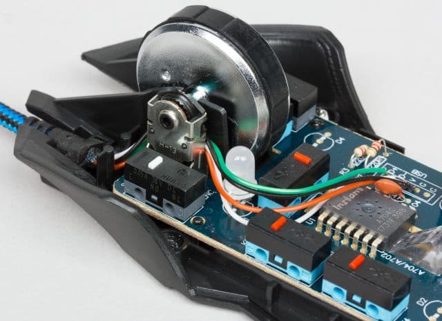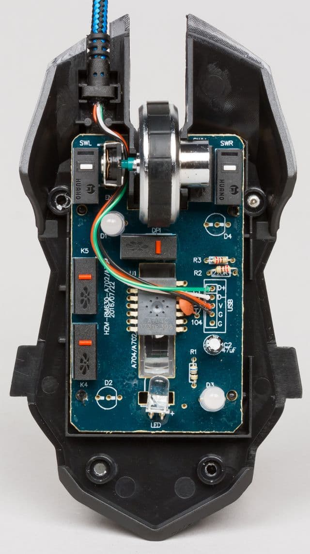 Контроллер колеса прокрутки механический. Для основных кнопок мыши применены переключатели Huano White.