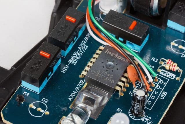 В качестве оптического сенсора задействован интегрированный с контроллером чип Instant A704C, документацию на который найти не удалось.