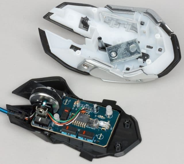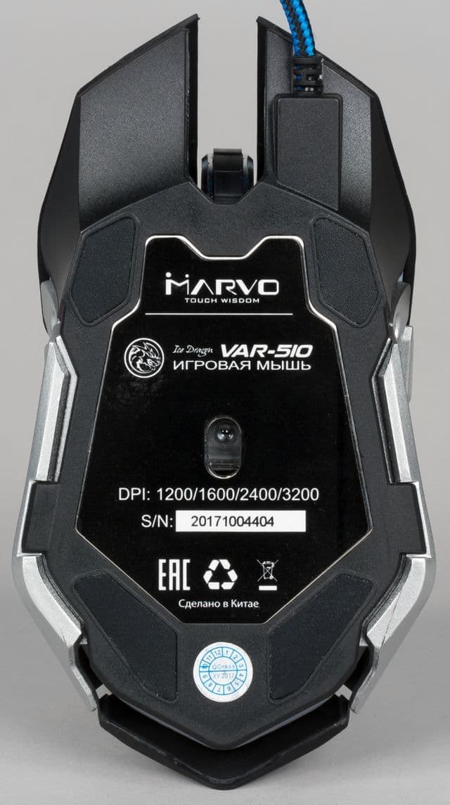 Корпус мыши из состава игрового комплекта выполнен из пластика в двух цветах — чёрном и серебристом. Чёрный пластик на ощупь напоминает покрытие софттач, то есть бархатисто-гладкий, а серебристые детали — просто гладкие.