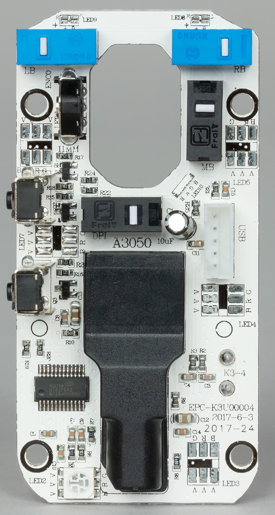В целом плата мыши выглядит очень аккуратно, качество пайки и сборки хорошее.