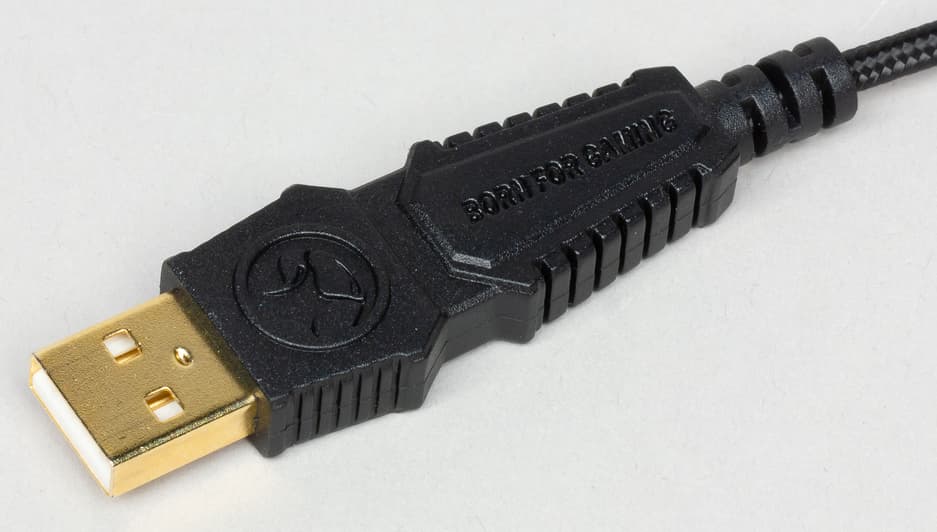 Кабель подключения снабжён тканевой оплёткой, предотвращающей преждевременное перетирание кабеля при интенсивной работе. Длина кабеля — 1,7 метра, чего хватит для подключения даже к блоку, стоящему на удалении от рабочей поверхности. Интерфейс подключения — USB 2.0.