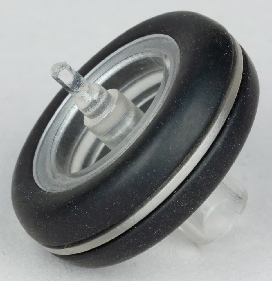 Колесо прокрутки прорезиненное и гладкое, по центру идёт пластиковая вставка, через которую пробивается подсветка, дублирующая подсветку логотипа. Ход колеса плавный, ступени достаточно мягкие. Усилие прокрутки и нажатия колеса — среднее.