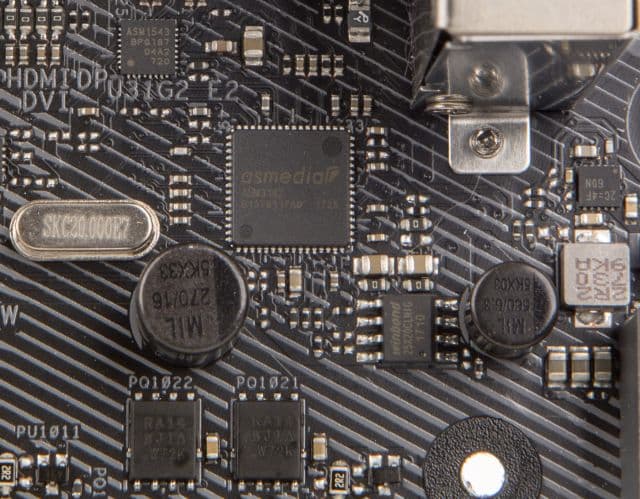 Два порта USB 3.1, выведенные на заднюю панель платы, реализованы на базе контроллера ASMedia ASM3142, который подключается к чипсету по двум линиям PCIe 3.0. Один из этих портов имеет разъём Type-A, а другой — Type-C.