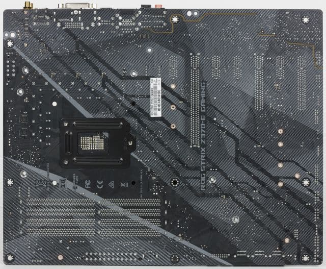 Плата Asus ROG Strix Z370-E Gaming выполнена в форм-факторе ATX (305×244 мм). Для её монтажа в корпус предусмотрены стандартные девять отверстий.