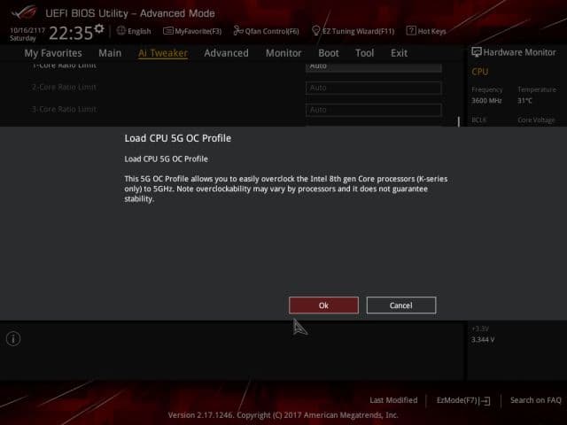 Можно воспользоваться и разгонным пресетом. В частности, предусмотрен пресет разгона до частоты 5,0 ГГц.
