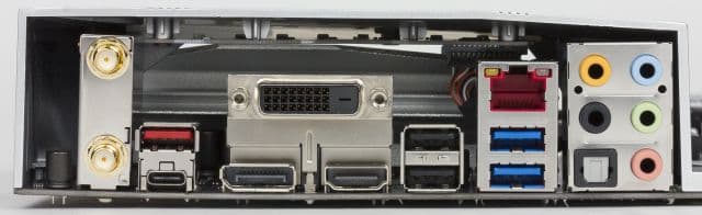 Поскольку процессоры Coffee Lake имеют интегрированное графическое ядро, для подключения монитора на задней панели платы имеются видеовыходы Display Port 1.2, DVI-D и HDMI 1.4.