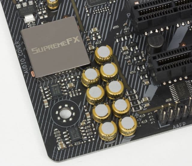 Аудиоподсистема платы Asus ROG Strix Z370-E Gaming основана на кодеке Realtek ALC1220 и изолирована на уровне слоев PCB от прочих компонентов платы. На задней панели платы предусмотрены пять аудиоразъёмов типа мини-джек (3,5 мм) и один оптический разъём S/PDIF (выход).