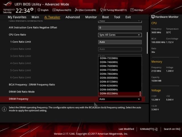 Естественно, имеется возможность разгонять память, изменяя её частоту и тайминги. Максимальная частота памяти DDR4 составляет 8533 МГц (при частоте BCLK 100 МГц).