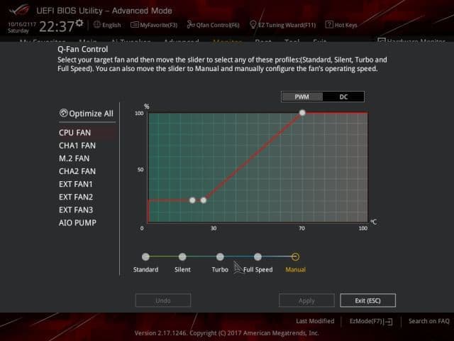 И конечно же, в UEFI BIOS Setup можно настроить скоростной режим работы вентиляторов.