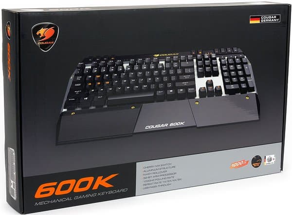 Строго оформленная коробка Cougar 600K с изображением клавиатуры впечатляет своими размерами.