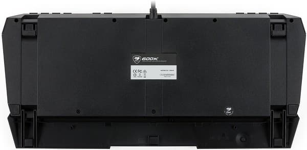 Вес клавиатуры свидетельствует о том, что типичные для механических клавиатур дополнительные утяжелители в Cougar 600K не используются. Впрочем, клавиатура имеет достаточную устойчивость, обеспечиваемую четырьмя прорезиненными ножками, две из которых находятся на выдвигающихся вперед стойках для увеличения угла наклона.