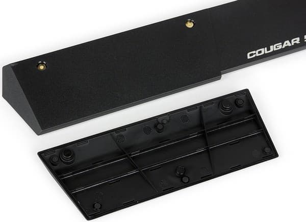 В конструкции Cougar 600K используется алюминий, что в сочетании с угловатой формой корпуса придает клавиатуре собственный стиль. Желтые «псевдоболты» являются сугубо декоративными, крепежной функции они не выполняют.
