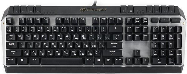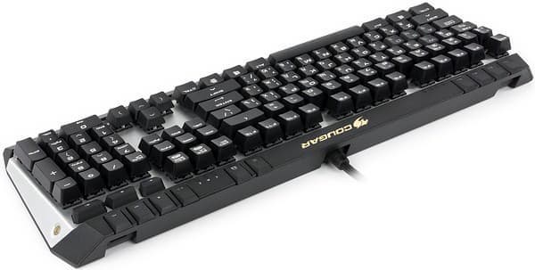 Клавиатура оснащена теми же механическими переключателями производства компании CHERRY Electrical Products, что и Cougar 700K. В перспективе возможно появление модификаций с переключателями четырех типов — Cherry MX Black, Cherry MX Red, Cherry MX Brown и Cherry MX Blue. На момент тестирования для российского рынка локализована только модификация с «черными» переключателями, соответствующая отметка находится на коробке.