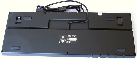 Отсоединяемый кабель с ферритовым фильтром (еще одно по большей части маркетинговое решение) имеет разъем Micro-USB. В нижней части клавиатуры организовано пространство для прокладки кабеля в три стороны (назад, влево и вправо), что позволяет организовать рабочее пространство наиболее удобным способом.