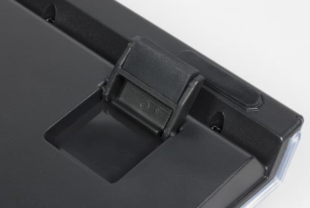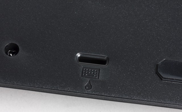 На днище клавиатуры есть четыре щели, обозначенные как дренажные отверстия. Вероятно, клавиатура не боится пролитой на неё жидкости.