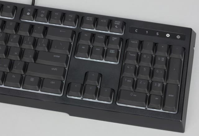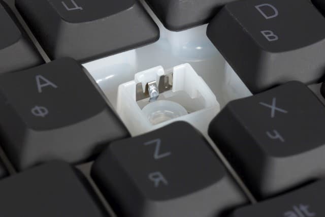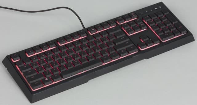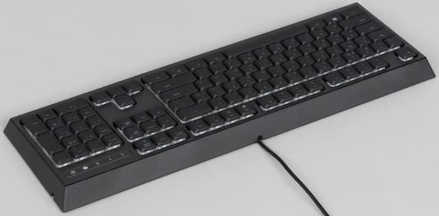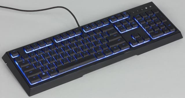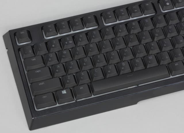 В результате привычные ощущения мембраны немного меняются (увеличивается усилие в начале хода) и дополнительно добавляется звук щелчка, знакомый по механическим переключателям, но более тихий. Ход клавиш при этом небольшой — около 2,5 мм.