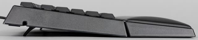 В сочетании с тем, что передние резиновые вставки в такой конфигурации неплотно контактируют с поверхностью стола, сместить клавиатуру во время работы становится существенно проще. Что касается дополнительной прибавки высоты, то она не регулируется и составляет около 12 мм.