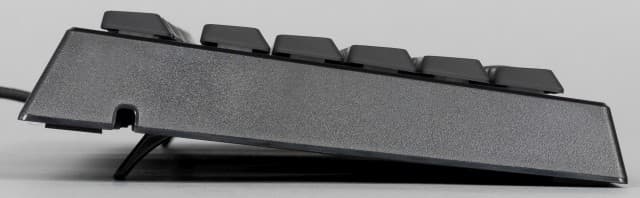 Опирается клавиатура в обычном варианте установки на четыре крупные резиновые ножки и очень крепко стоит на столе. Но если вы привыкли поднимать заднюю часть для обеспечения наклона, то ситуация меняется. Дело в том, что откидывающиеся дополнительные ножки сделаны исключительно из пластика.