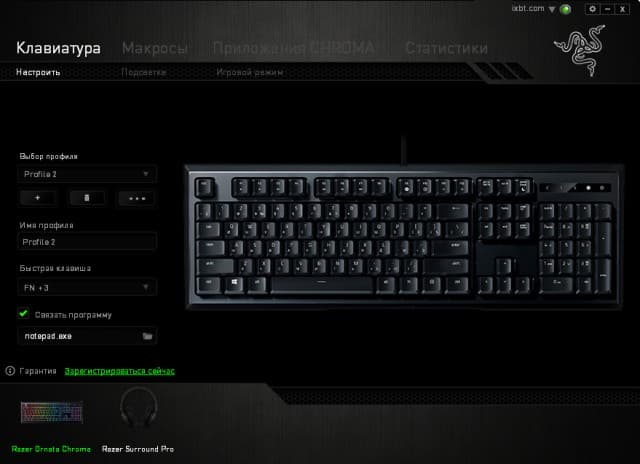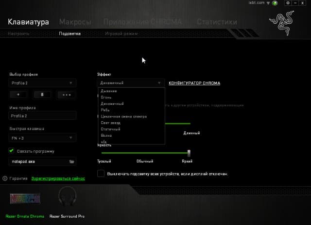 Отметим, что все это полноценно работает только при наличии установленного программного обеспечения Razer. Без него кнопками на клавиатуре вы можете только менять яркость подсветки, но не режимы её работы, что может быть не очень удобно.
