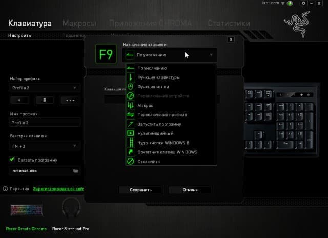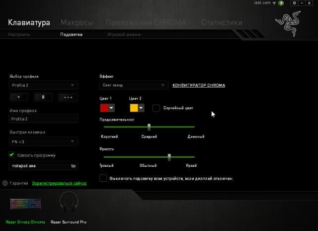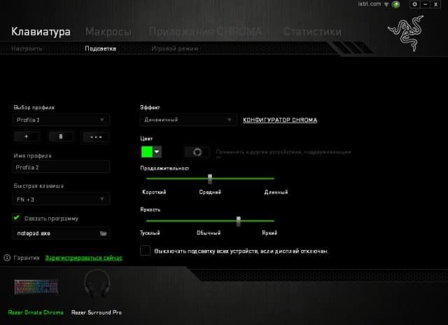 Заявлена также возможность автоматического переключения профиля при запуске указанной программы, но у нас это не работало.