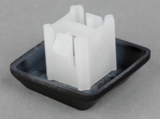 Сами клавиши изготовлены из полупрозрачного пластика и покрашены матовой чёрной краской, в которой остались маски для обозначений.