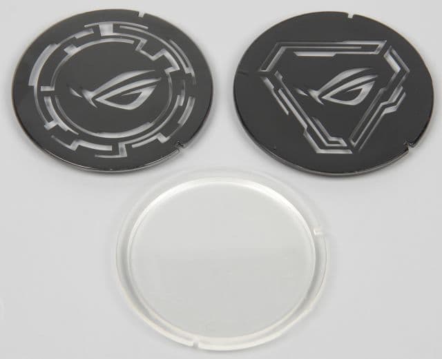 Вставок всего три. Два вида с логотипом ROG и просто прозрачная. Также красным подсвечивается логотипом ROG сзади на стойке. В меню можно выбрать яркость этой подсветки или отключить её совсем. Но это ещё не всё. Полупрозрачное зеркальное кольцо вокруг площадки для крепления подставки изнутри подсвечивается тремя RGB-светодиодами. Для этой подсветки в меню монитора можно выбрать несколько статичных и динамичных многоцветных вариантов свечения.