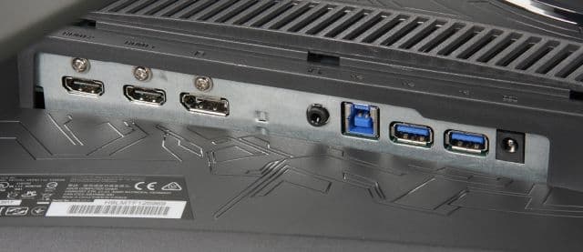 Видеовходов три — HDMI версий 1.4 и 2.0 и DisplayPort версии 1.2. Из них входы DisplayPort и HDMI 2,0 поддерживают на вход сигнал с максимальными для этого монитора разрешением и частотой кадров, и только они поддерживают AMD FreeSync. Входы выбираются в меню, кроме того, в случае отсутствия сигнала на текущем входе срабатывает автоматический выбор активного входа. Входы HDMI и DisplayPort способны принимать цифровые аудиосигналы (только PCM стерео), которые выводятся после преобразования в аналоговый вид через стандартное гнездо 3,5 мм.