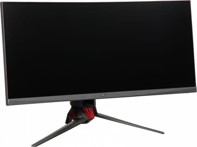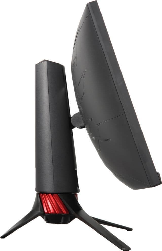 Монитор выполнен в уже узнаваемом стиле игровых мониторов серии ROG от компании Asus. Панели монитора изготовлены из тёмно-серого (почти чёрного) матового пластика, в основном ровного, но местами с фактурой и геометрическим узором. Внешняя поверхность матрицы чёрная, полуматовая (но зеркальность проявляется в случае отражения точечных источников света), внешний слой матрицы жёсткий.