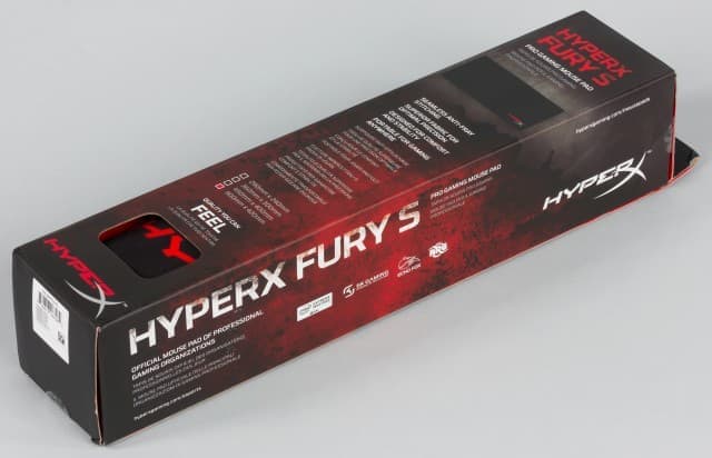 Коврик поставляется в свёрнутом состоянии в картонной коробке с характерным для HyperX оформлением, включающим в себя характеристики, логотипы игровых ассоциаций, а также информацию о двухгодичной гарантии и бесплатной технической поддержке.