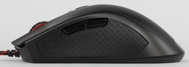 Две стандартные дополнительные кнопки находятся в верхней части левой боковой стороны мышки. Они получили удобные кнопки с четким разделением из глянцевого пластика. Для них применяются переключатели Kailh. Звук срабатывания немного глухой, усилие нажатия выше среднего.