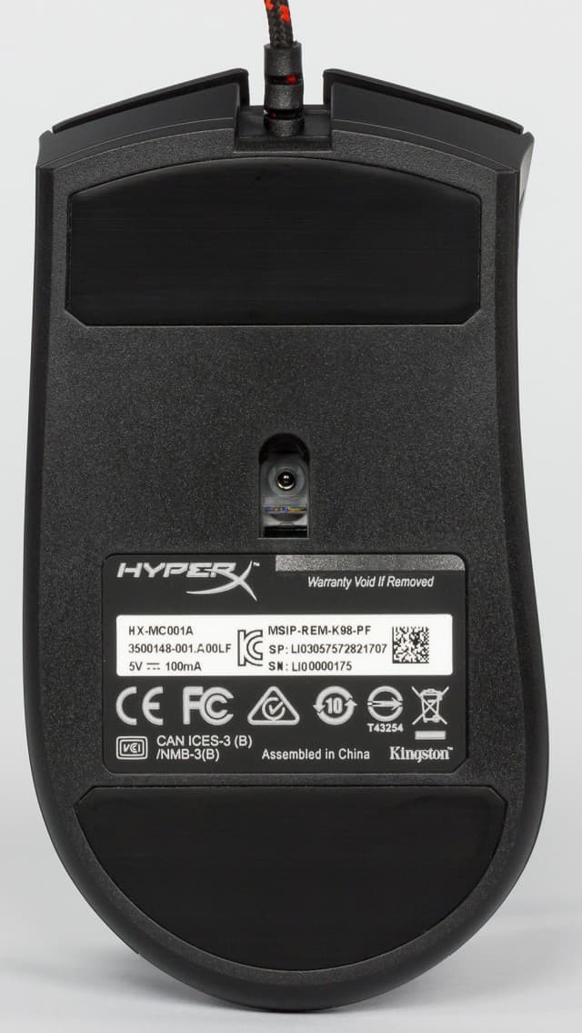 Для комфортного движения по коврику используются две крупные наклейки на дне корпуса мышки. Они, как часто бывает, закрывают винты крепления корпуса. Если вы будете использовать устройство в течение длительного времени и вам потребуется почистить мышку от пыли с разборкой корпуса, после отклейки ножек, обратно они без помощи фена так хорошо могут уже не встать.