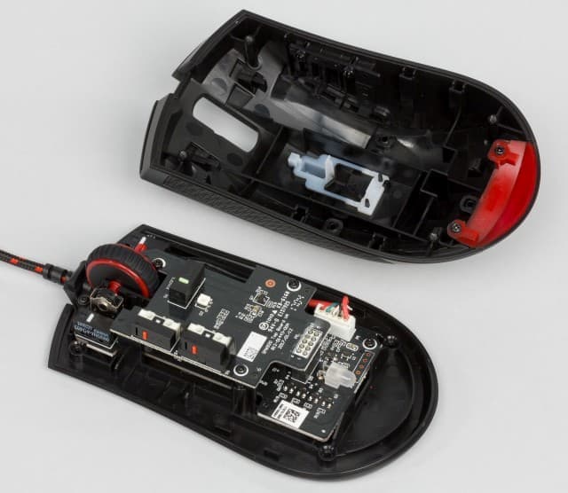 Сенсор мышки — известный Pixart PMW3310. Он хорошо зарекомендовал себя в разных жанрах, но самым-самым сегодня уже не является. Впрочем, обеспечиваемые им точность и качество более чем достаточны для подавляющего числа пользователей. Заметим, что подсветка сенсора здесь инфракрасная, и на стеклянных поверхностях мышка не работает.