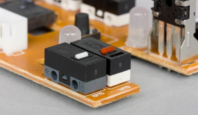 В качестве переключателей для ЛКМ и ПКМ выступают Huano White, для навигационных кнопок применены красные переключатели с логотипом «LJ».