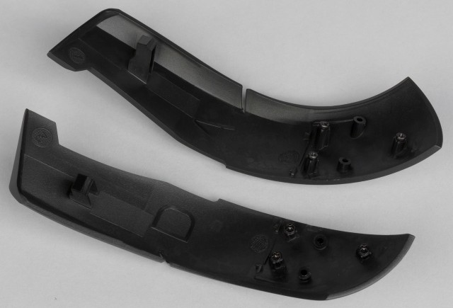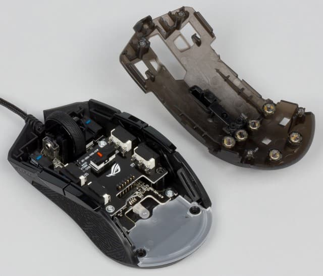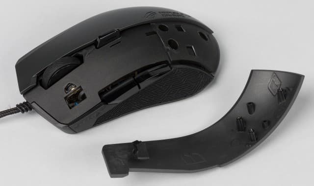 Две панели (левая и правая) выполнены из пластика и удерживаются на месте тремя небольшими, но сильными магнитами, расположенными в задней части спинки мышки. Поменять их можно независимо одну от другой, и никаких инструментов для этой операции не потребуется.