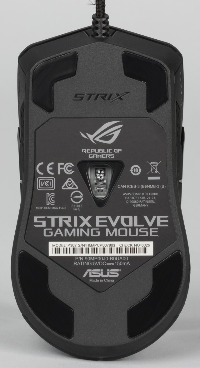 По конструкции, дизайну, материалам и сенсору к Asus ROG Strix Evolve нет существенных замечаний. Внешне, особенно с выключенной подсветкой, эта модель кажется близкой к рассмотренной ранее Asus ROG Pugio. Единственное, что вызвало сомнения, — реализация дополнительных боковых кнопок.