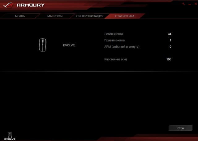 На последней для мышки отображается общая длина «пробега» в сантиметрах и число нажатий основных кнопок.