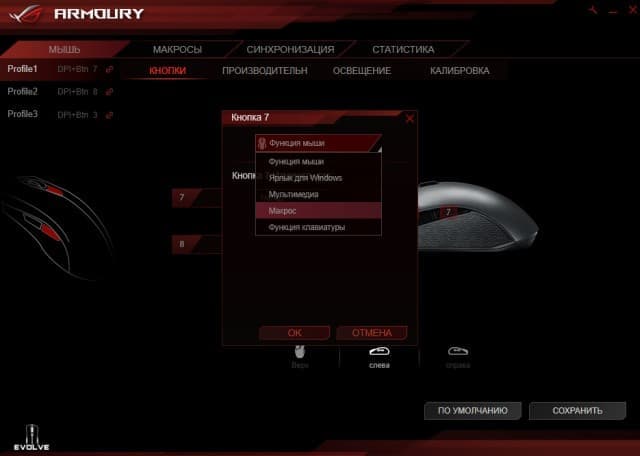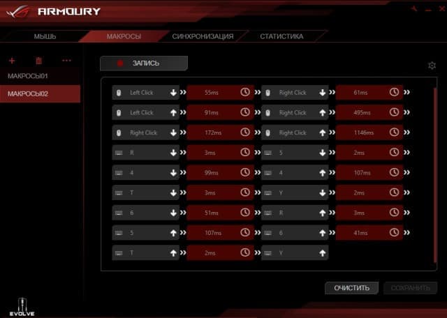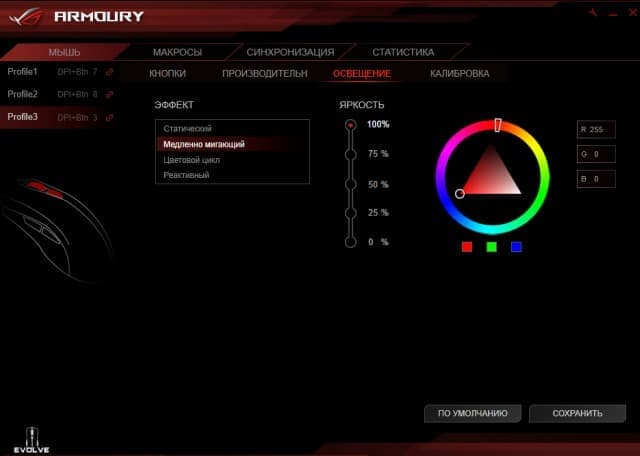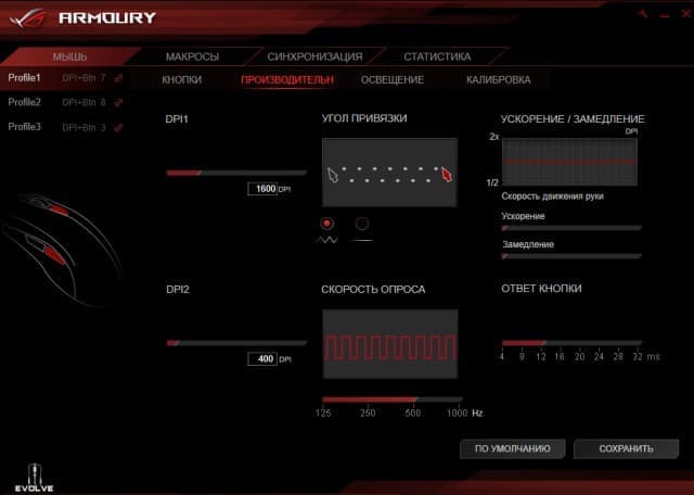 Компания Asus предлагает удобное фирменное программное обеспечение для игровых манипуляторов ROG Armoury. Оно является общим для всех моделей, работает под операционными системами семейства Windows и позволяет настраивать работу мышек и клавиатур серии ROG.