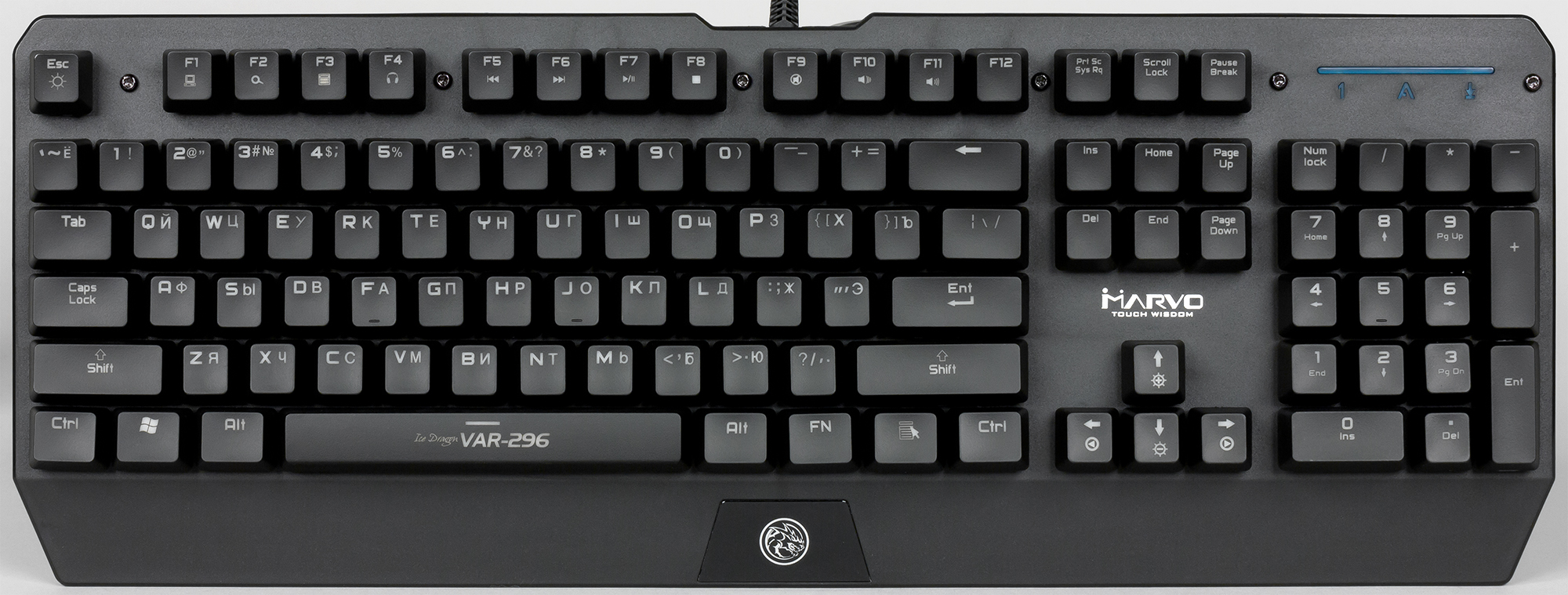 Marvo Ice Dragon VAR-296 — ещё один солдат в битве «дешёвая механика vs дорогая мембрана». В данном случае пользователь жертвует поддержкой записи макросов и RGB-подсветкой, получая взамен вполне себе хорошие механические переключатели за небольшую цену. В плюсы данной клавиатуры также стоит занести утилитарный дизайн.