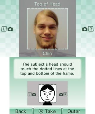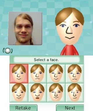 3DS предлагает сфотографироваться и сделать Mii-аватарку по образу и подобию. Получается плохо