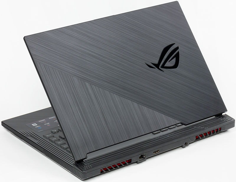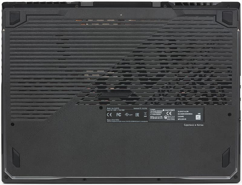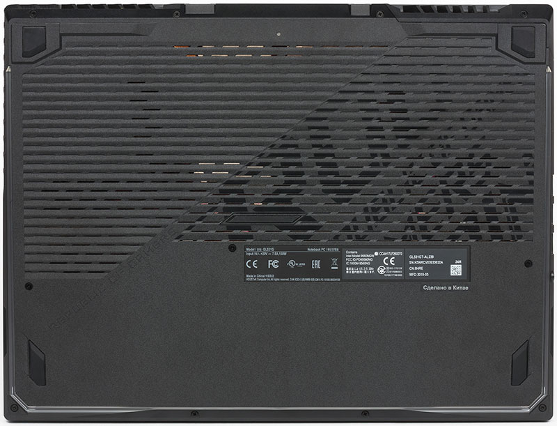 На верхней крышке с диагонально-шлифованной текстурой размещён крупный логотип геймерской серии ROG, правда без подсветки.