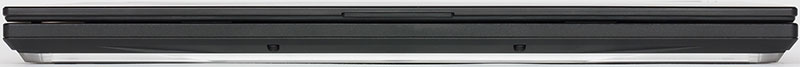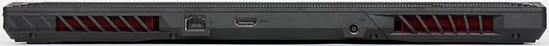 Размеры ноутбука составляют 360×275×26 мм, а весит он 2,4 килограмма – средние показатели для 15-дюймовой модели. Спереди на корпусе никаких разъёмов нет, а сзади выведен сетевой разъём, порт HDMI и разъём питания. По бокам от них находятся вентиляционные решётки, через которые видны медные радиаторы системы охлаждения.