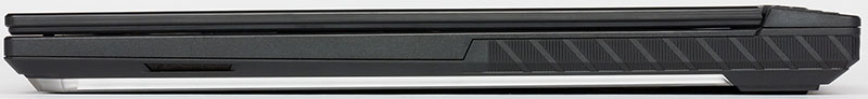 Обращает на себя внимание перфорированная решётка с задней и правой боковой стороны корпуса ноутбука, которая не только выглядит стильно, но и имеет практическую пользу, активно участвуя в охлаждении внутренних компонентов.