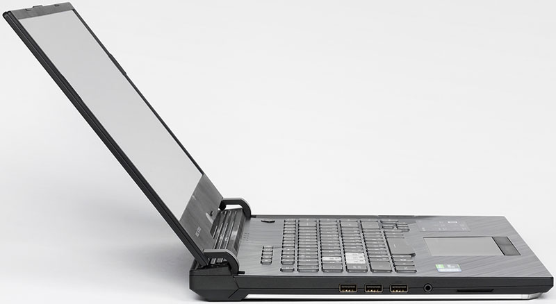Дизайн Asus ROG Strix GL531GT аккуратный и выдержанный. Все панели корпуса выполнены в тёмном сером цвете и имеют характерную для серии ROG шлифовку, придающую устройству дорогой вид. Чувствуется рука дизайнеров BMW, участвовавших в создании ноутбуков данной серии.